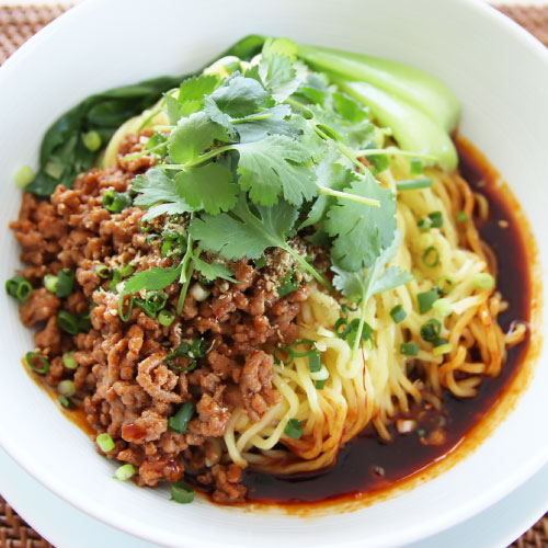 豚ひき肉、チンゲン菜、ねぎ、パクチー、白すりごま、花椒